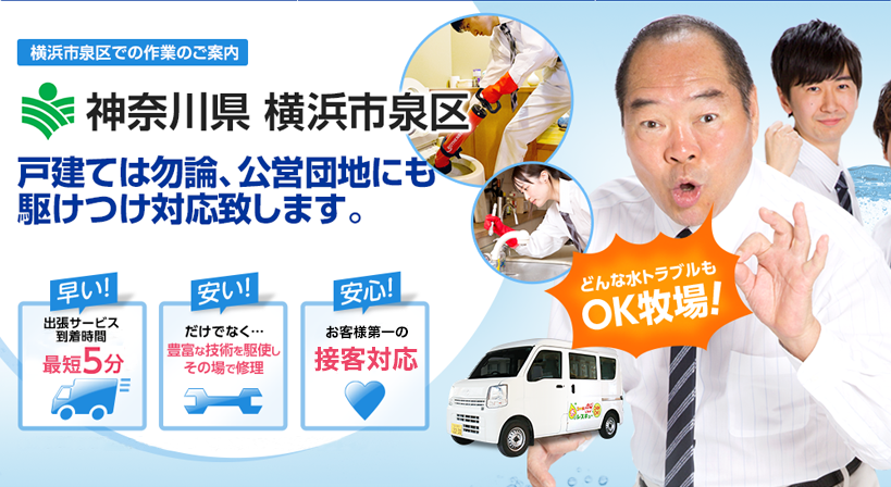 「洗面所の水が流れなくなってしまった!」というトラブルの原因はさまざまですが、石けんや髪の毛などを流してしまったことも原因となりうる様です。ビッグ・エー 横浜岡津町店や相鉄ローゼン いずみ中央店・セブン-イレブン 横浜泉区役所前店や横浜いずみ台病院の近辺にも認定水道技師がすぐに出張し、ご自身では難しい排水管のクリーニングを、いつでも実施させていただきます。