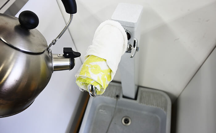 作業に必要なものとは、ぬるま湯とタオルです。タオルも通常のフェイスタオルのようなもので良いので、蛇口交換やつまり修理のように特別なものは必要ありません。