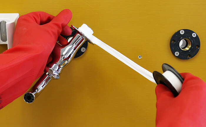 キッチンの単水栓の根本から水漏れしている場合、パッキンではなくシールテープを巻きなおすことによって水漏れを修理することができます。